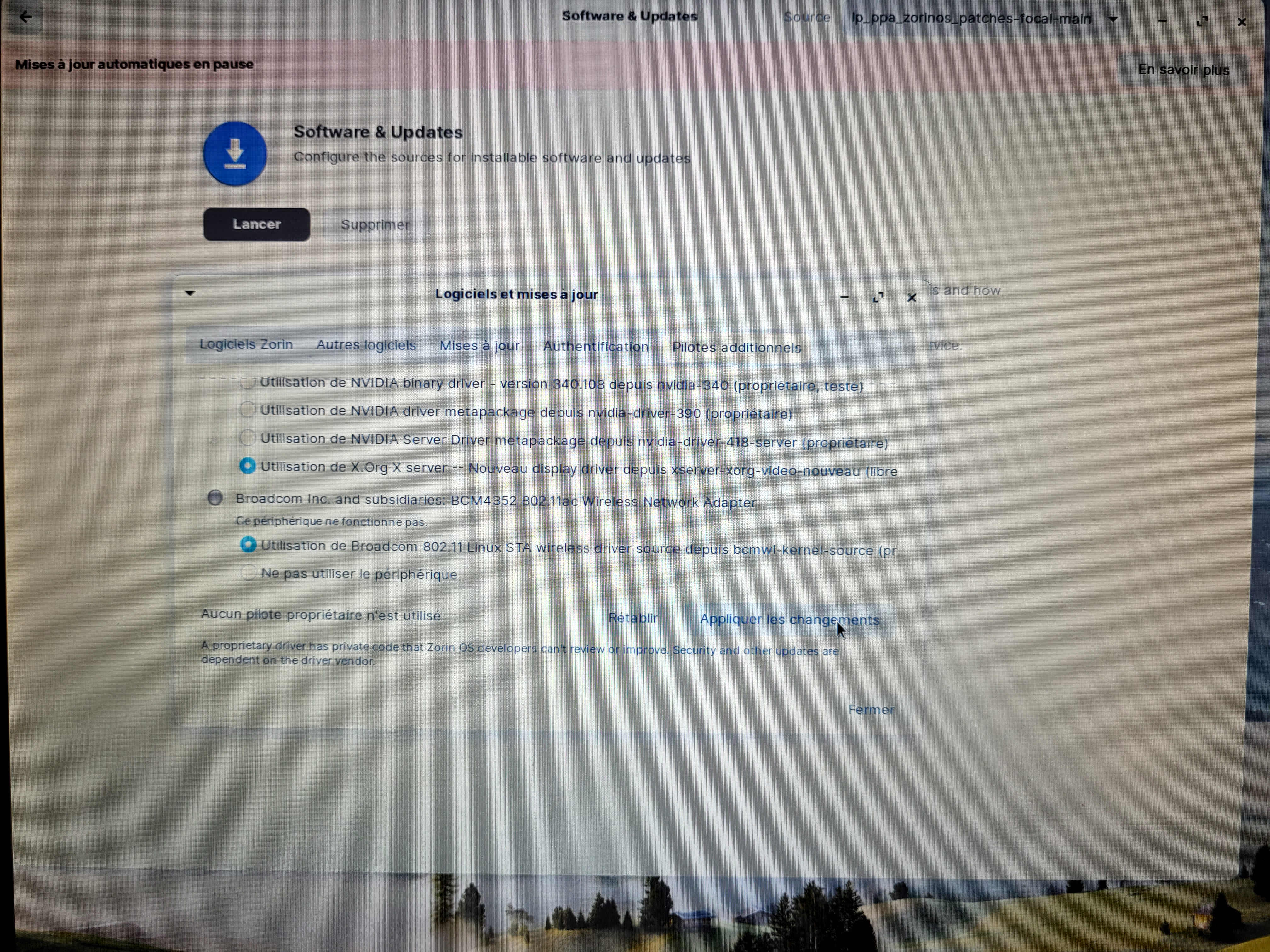 Mais sur ce coup, j'ai singulièrement manqué de clairvoyance — au propre comme au figuré —, vu que ta photo d'écran de l'onglet "Pilotes additionnels" donnait les références de ta carte WiFi.