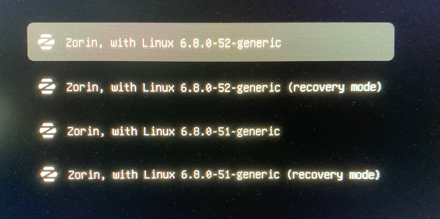 Je n'utilise pas Zorin au quotidien, mais je continue à le mettre à jour. Je n'ai donc plus que les versions 50 et 52 du noyau dans le répertoire "/boot".
