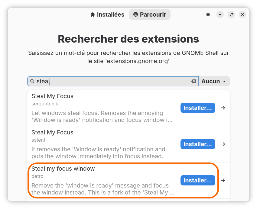 Sur les trois extensions proposées, seule celle-ci convient à la version du shell utilisée par Zorin 18 (sinon, un message déconseille d'installer une extension conçue pour une autre version du shell — autre inconvénient de GNOME) :