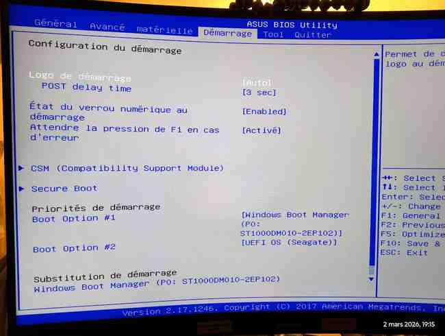 - Une fenêtre bios, c'est ouvert et pas compris le "bla bla".