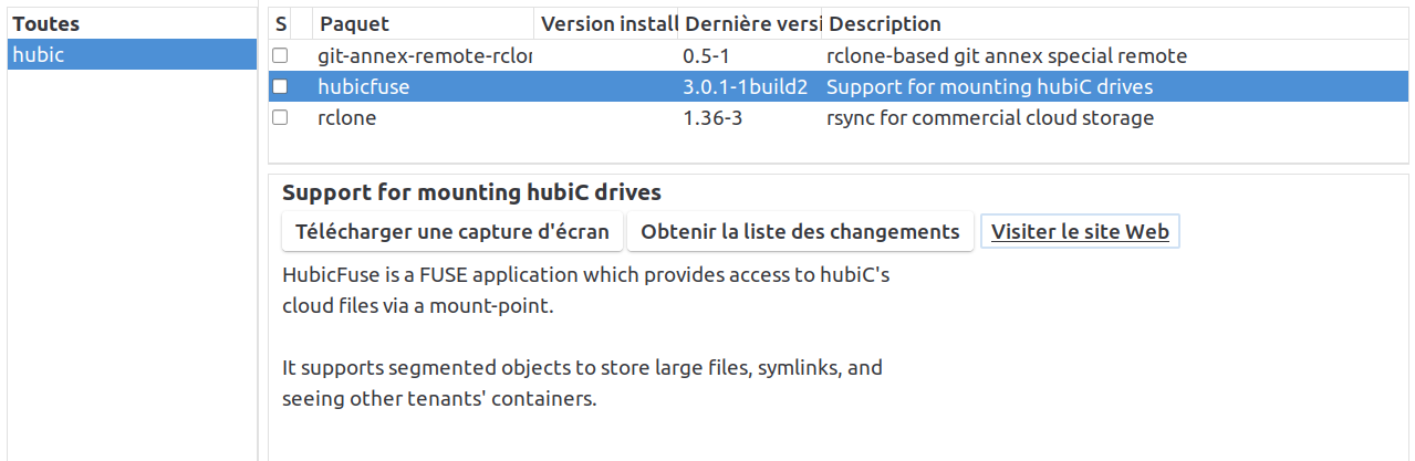 Notes1. Testé sur Kubuntu / Xubuntu 32 et 64bit2. Testé sur le démon hubic 1.2.4.353. Le démon Hubic doit être installé et en cours d'exécution (l'interface graphique vous informera de ceci)