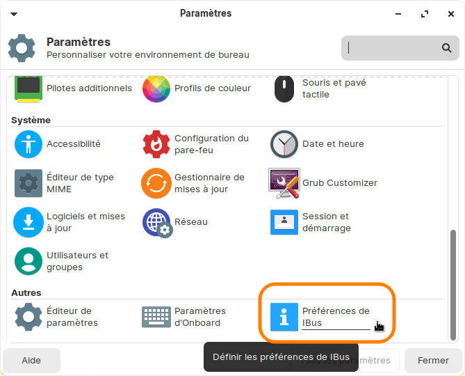 As-tu cherché à activer les "Préférences de Ibus" dans les "Paramètres" ?