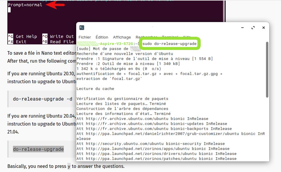 Comme Zorin 15 s'appuie sur Ubuntu 18.04, j'ai voulu essayer la méthode de Linux Babe pour passer à la version 20.04 sur laquelle reposera Zorin 16.