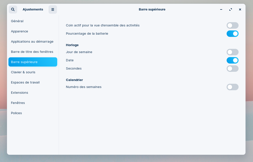 Dans le cas présent, et dans quelques autres, il faudra installer une application supplémentaire, Gnome Tweaks en l'occurrence — séquence nostalgie : ah, les tweaks de Windows !