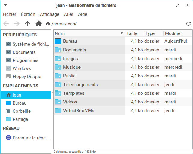 Le fichier "fd0" correspondant au lecteur de disquette qui fonctionne est du type "périphérique de blocs", comme ceux qui correspondent aux différentes partition des deux disques durs ("sda", "sdb"). En revanche, les fichiers "sg0" et sg1", correspondant aux deux lecteurs optique sont du type "périphérique de caractères" (?).