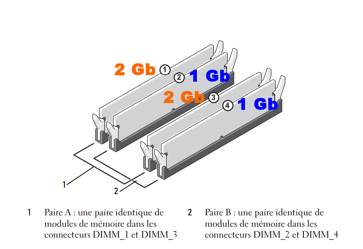 Comme je te disais, il y avait déjà les mêmes instructions dans le manuel de mon Dell Dimension de 2004, et si on ne le faisait pas, on avait le même problème que toi, les barrettes n'étaient pas reconnues et des petites diodes s'allumaient à l'arrière de l'ordi.