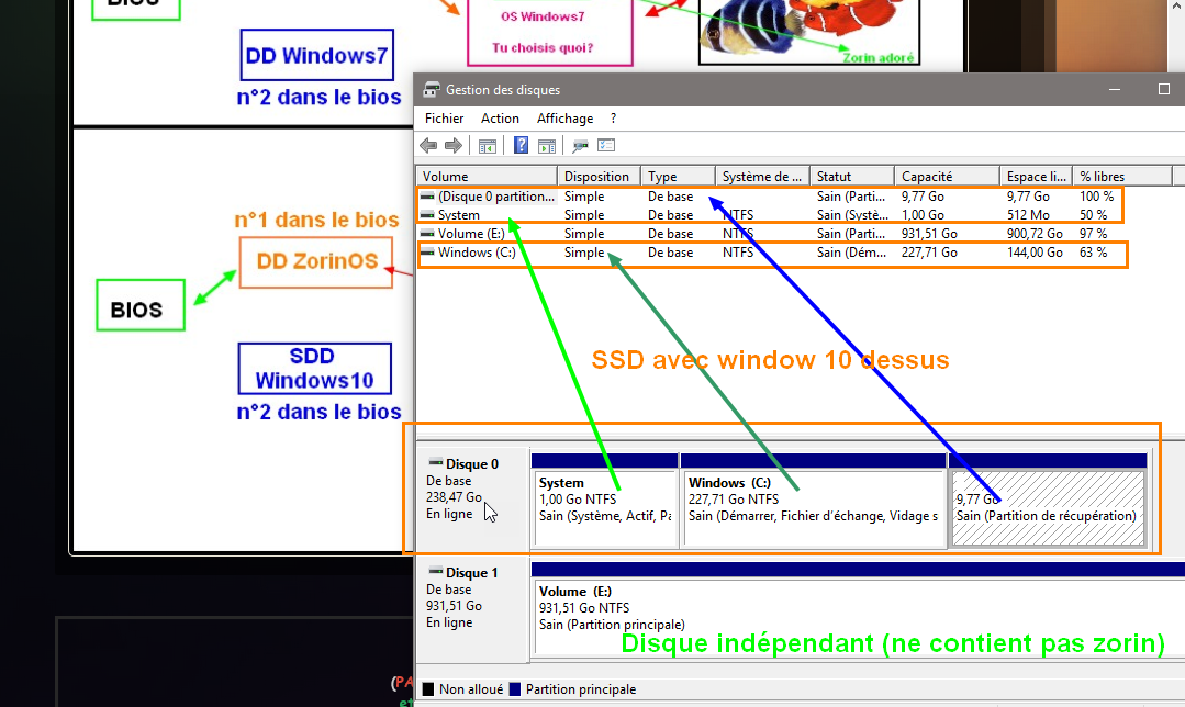 Pour répondre à ta question j'ai donc installé le Zorin en ayant le ssd de windows10 débranché du pc ( je n'ai pas de sauvegarde de ce windows10 pro oem et donc pas pris le risque de le foute en l'air)
