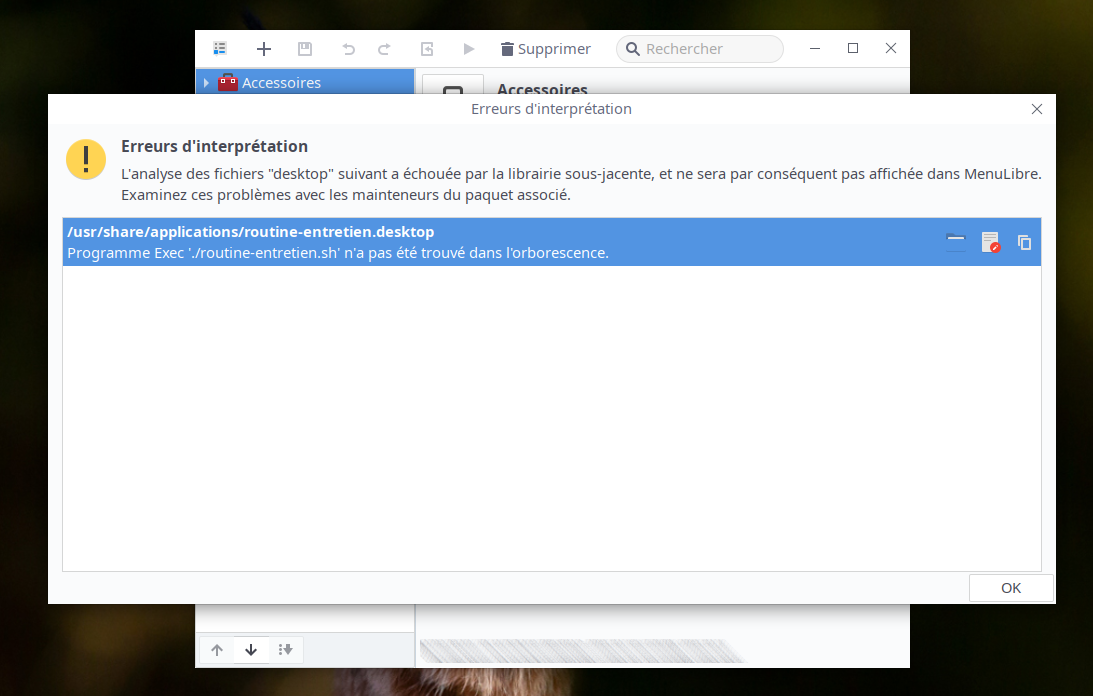 Heureusement que je n'ai pas supprimé les fichiers concernés car comme je l'ai écrit dans un autre sujet j'ai passé quelques années à me faire mes raccourcis persos dans mes différentes distros et ils me suivent partout. Ils sont important pour moi et donc ne doivent en aucuns cas être perdus du fait d'un software qui ne fait pas tout à fait son job (en ce qui concerne des alertes systèmes).