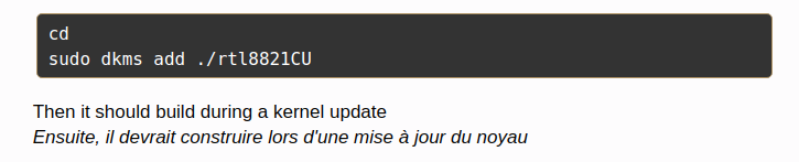 sudo dkms add ./rtl8821CU" dans un terminal!