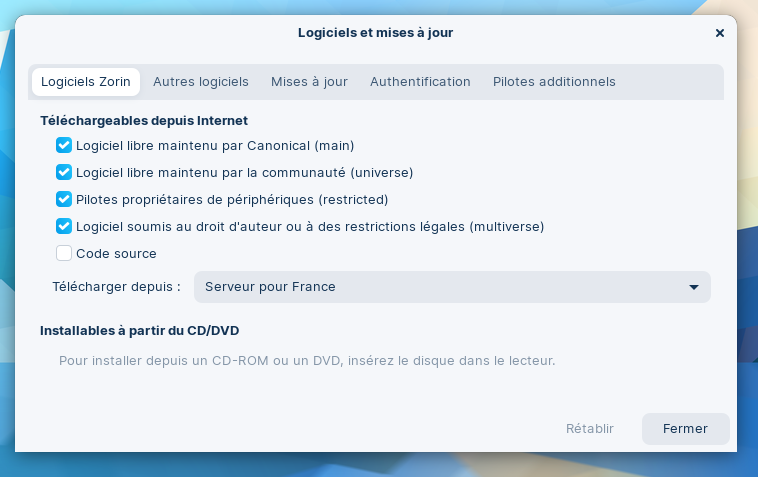 J'ai remarqué autre chose j'ai un autre ordi aussi sur Zorin os 16 et il a plus de logiciels par exemple Spotify on me propose le snap et le flatpack alors que sur l'ordi qui bug je n'ai que le snap en proposition.
