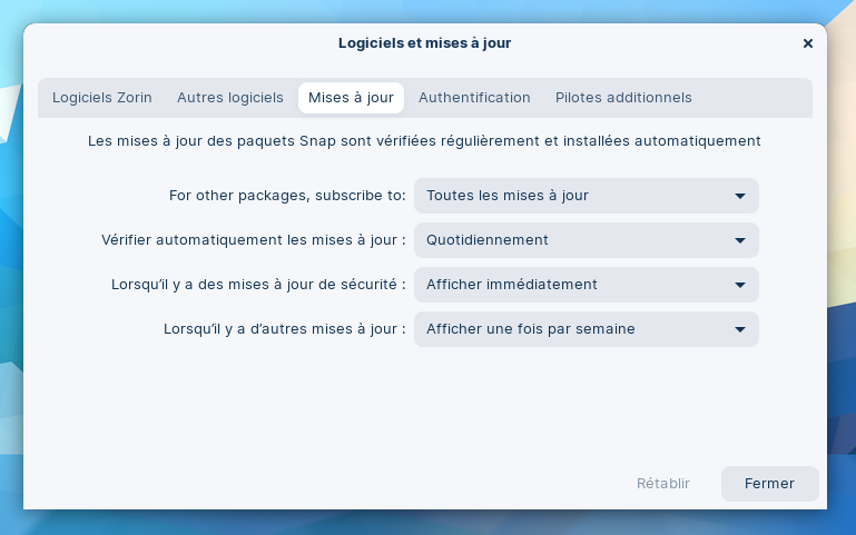 Zorin ne me propose jamais de mise à jour alors que je les vois en faisant un apt update et qu'il est réglé pour me prévenir quotidiennement.