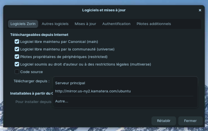 C'est la piste que je creuserais pour régler ton problème d'update du fait du manque de l'adresse des dépôts importants à l'installation d'un Zorin mis à jour.
