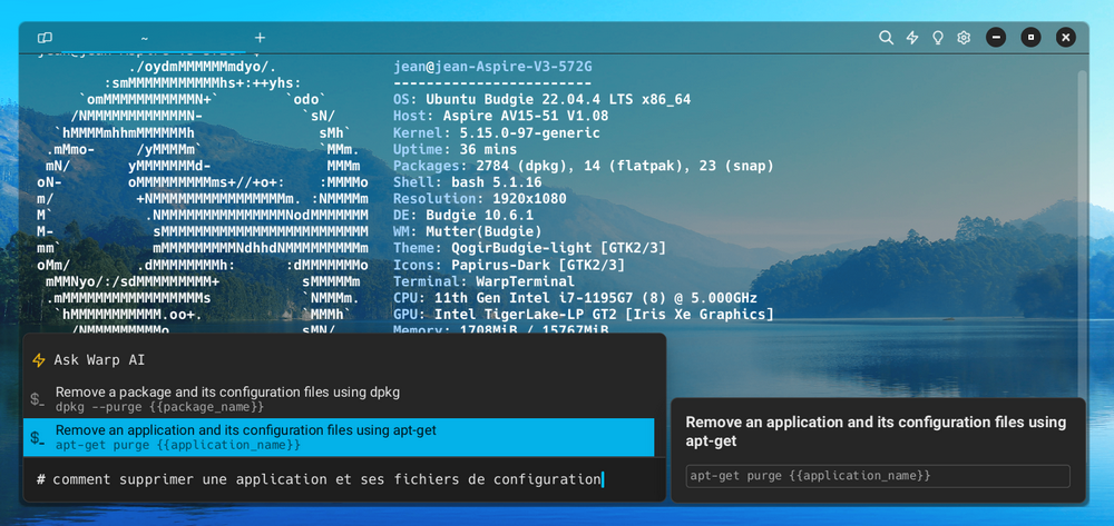 - Vous l'aurez compris : si Warp AI comprend le français, il répond en anglais et il n'y a pas (encore ?) de possibilité de franciser l'interface.