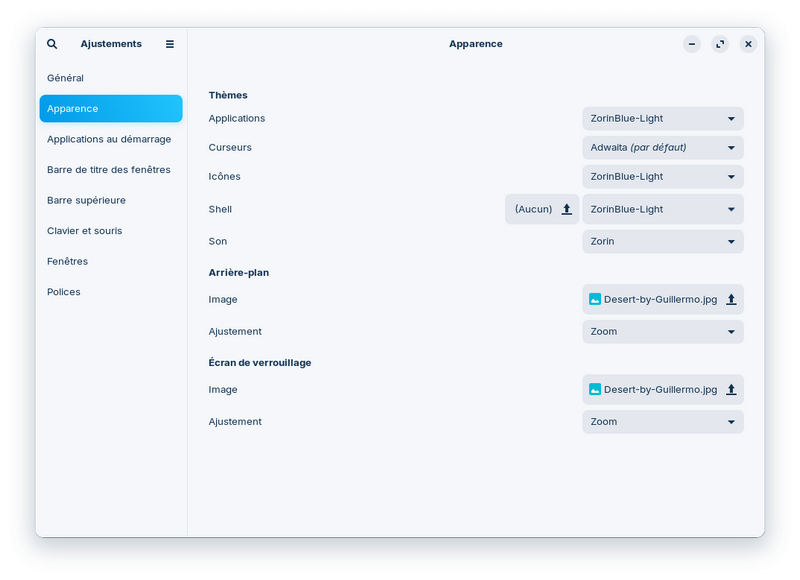 jlb a écrit : jeu. 18 avr. 2024 12:36 ["gnome-tweaks" permet] de changer de thème et de fond d'écran — et d'en choisir un différent pour l'écran de verrouillage