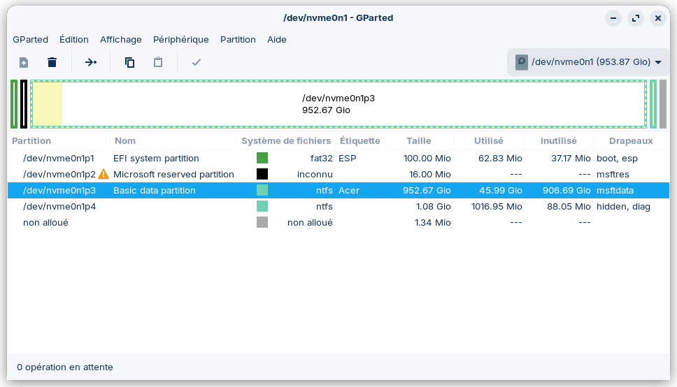 - Vous voulez préparer l'installation d'un OS de manière transparente dans le cadre d'un dual-boot ou d'un multi-boot, ou même créer un système de partitions tout neuf pour une installation propre et maîtrisée ? Tapez "gp" et lancez GParted.