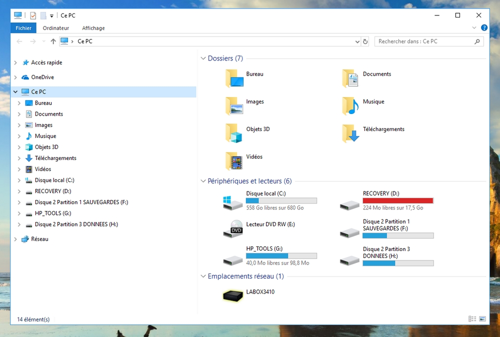 VertOurs a écrit : mer. 22 sept. 2021 14:09sur windonws lorsque l'on va dans le dossier ''ce PC'' aka ''poste de travail'', on trouve nos disques dur avec C:, D: comme sur linux lorsque l'on va a la racine du gestionnaire de tache. sauf que dans Windows il y a une petite barre qui affiche de manière graphique le remplissage du disque et vire au rouge si il est presque plein.