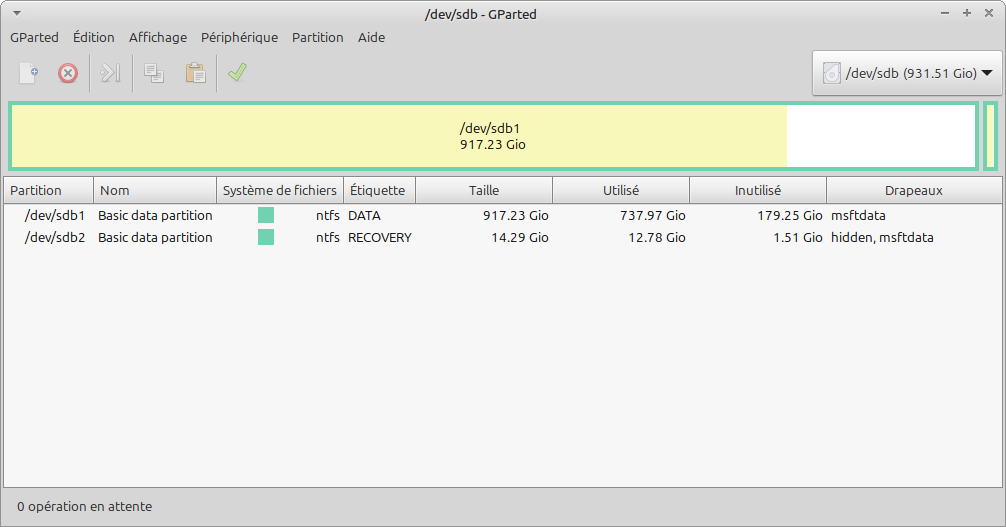 On a compris que tu galères, linux69500 . 😅 Un conseil, fais des citations plus précises ! Pour ce qui est de ta copie d'écran, je n'ai jamais vu ça : c'est Windows qui a compacté les données vers la gauche dans la partition "sdc3" ? Ce qui serait bien, c'est qu'avec Gparted (depuis la live session ) tu étiquettes tes partitions : clic droit > Étiqueter le système de fichiers > Appliquer les opérations (coche à droite de la barre d'outils). Tout le monde s'y retrouverait plus facilement : avec les mentions actuelles on ne sait pas vraiment où est le système Windows. J'ai déduit qu'il est sur "sdc3", mais maintenant, je n'en suis plus sûr. Merci de confirmer. Alors le problème de la partition Windows est résolu: Avec GParted, il fallait DEMONTER la partition Windows dans sdc3, puis VERIFIER. Plus haut j'avais dit que ça me fonctionnait pas probableme...