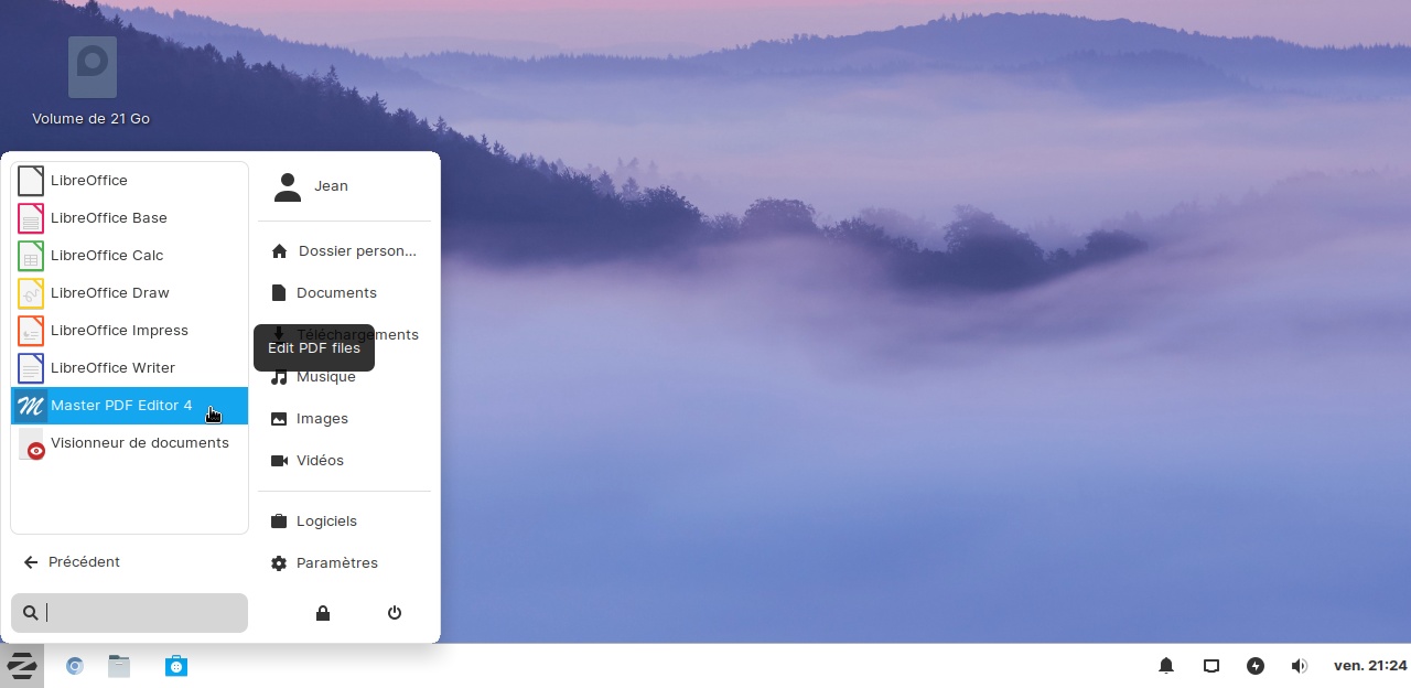 • Le lanceur se trouve dans la rubrique "Bureautique"
