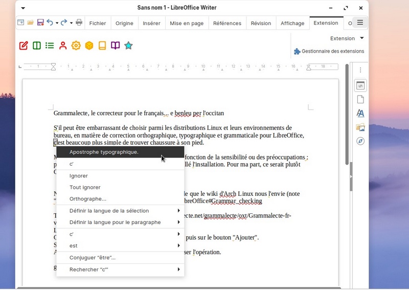 S'il peut être embarrassant de choisir parmi les distributions Linux et leurs environnements de bureau, en matière de correcteur orthographique, typographique et grammatical pour LibreOffice, c'est beaucoup plus simple de trouver chaussure à son pied.