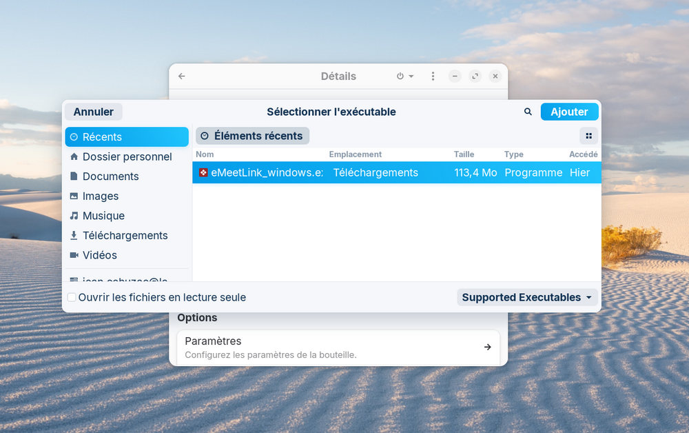 Elle installera "Bottles" qui se chargera d'installer ton programme Windows en quelques clics, avec toutes les dépendances nécessaires, dans un environnement conteneurisé, le tout par le biais d'une interface moderne et élégante.