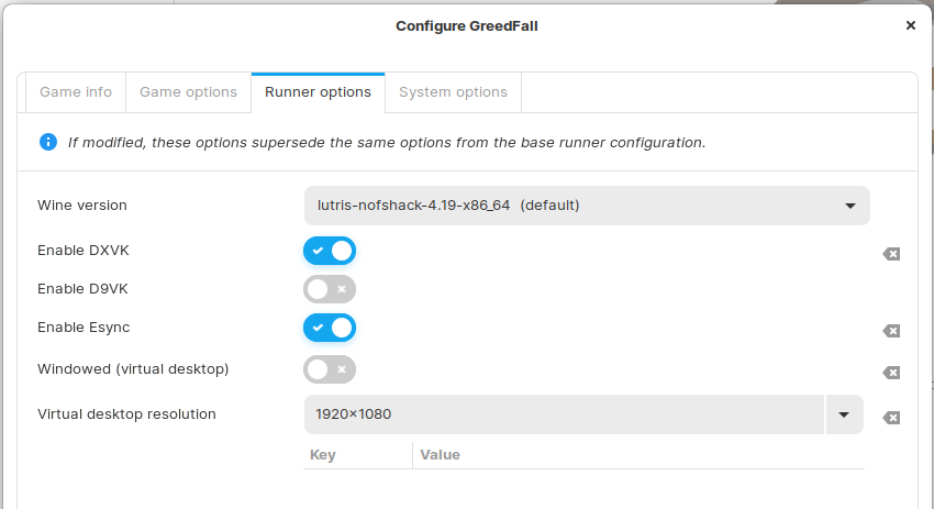 L’utilisation de Lutris est présentée comme facile, cela me fait un peu sourire, car dans mon cas j’ai mis 2 jours à faire fonctionner GreedFall que j’avais installé le jeu en 5 minutes sur Windows 10. En fait, pour des jeux simples tout se fait en automatique, mais pour d’autres plus élaborer, il faudra aller à la pêche sur le site de Lutris pour avoir les paramètres de fonctionnement du jeu et chercher des infos sur le Net pour les cas les plus difficiles.