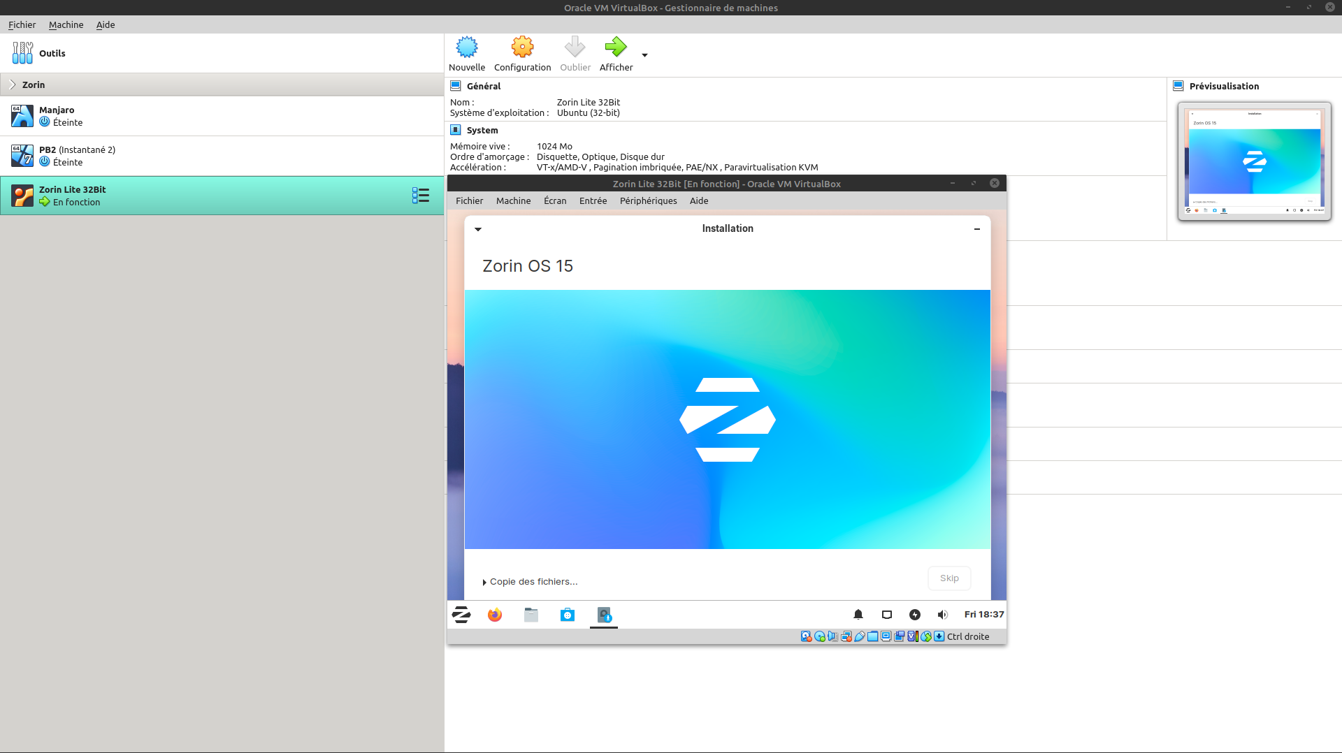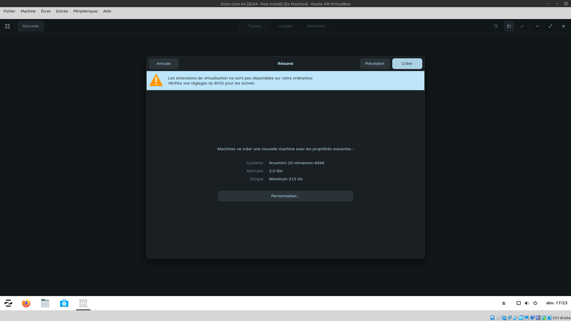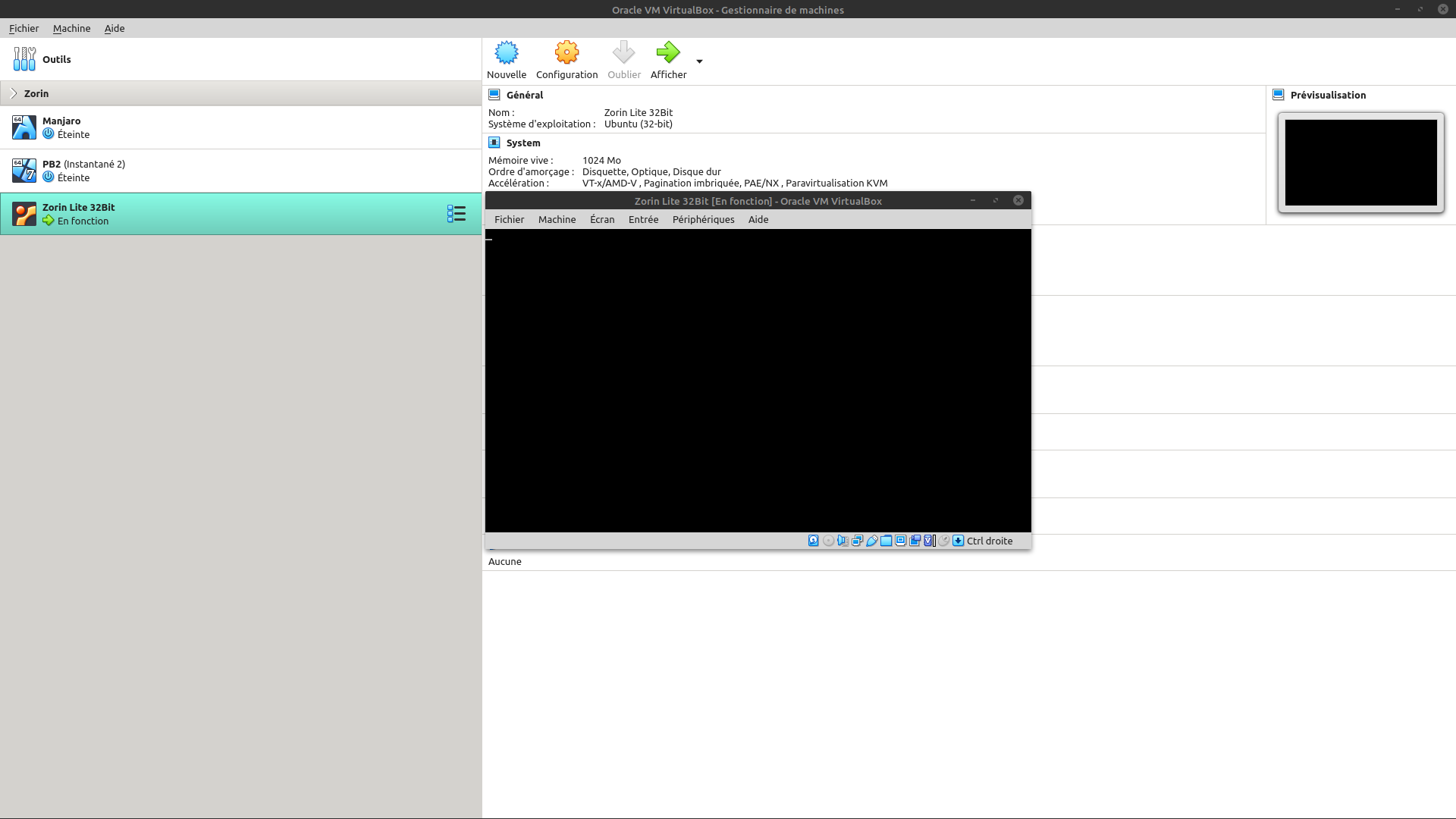 Par contre, je vais voir si VirtualBox fonctionne, même si ce n'est que pour un Zorin lite 32 !
