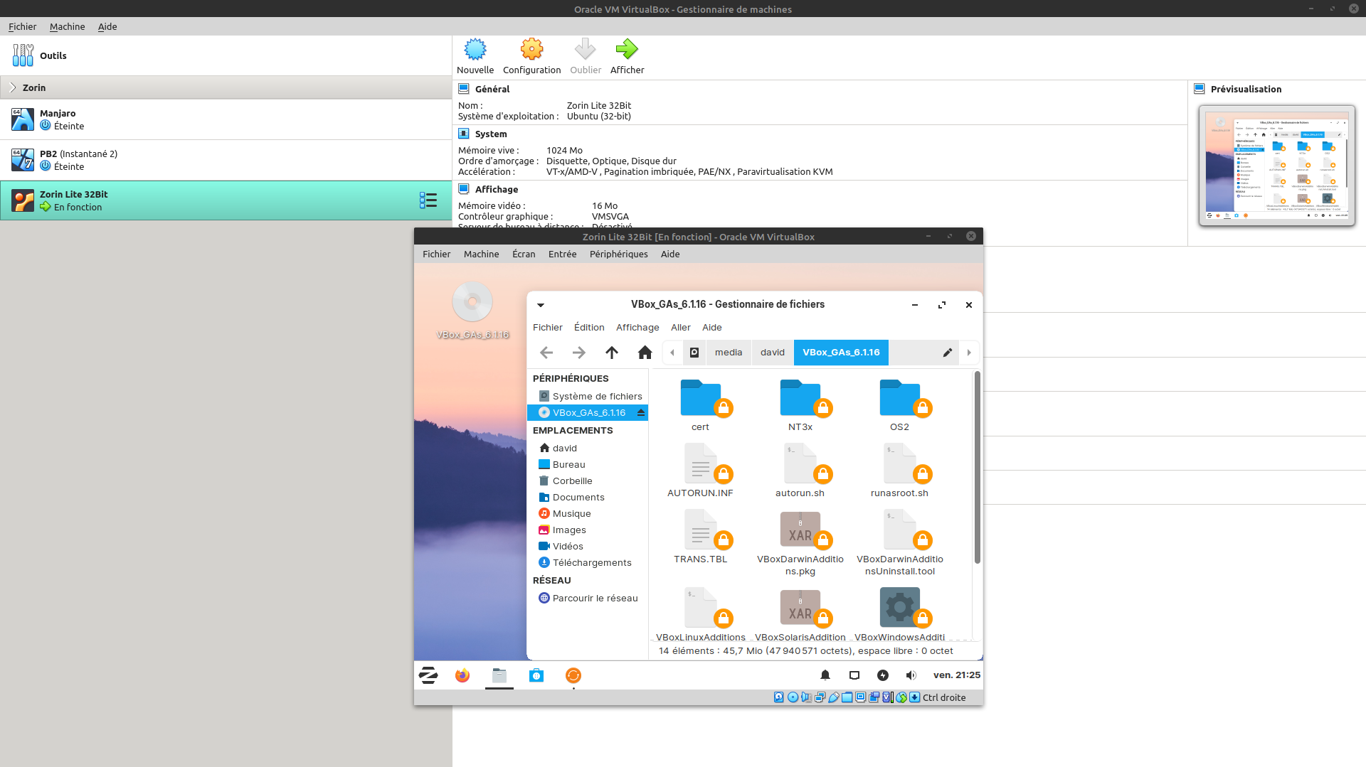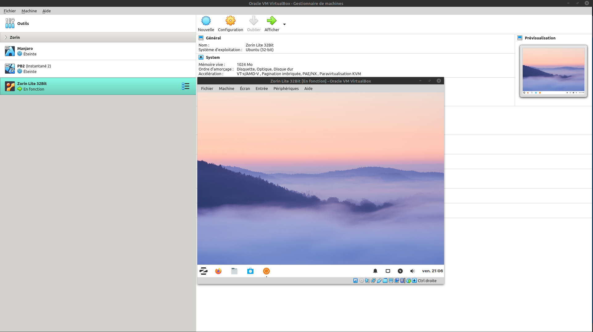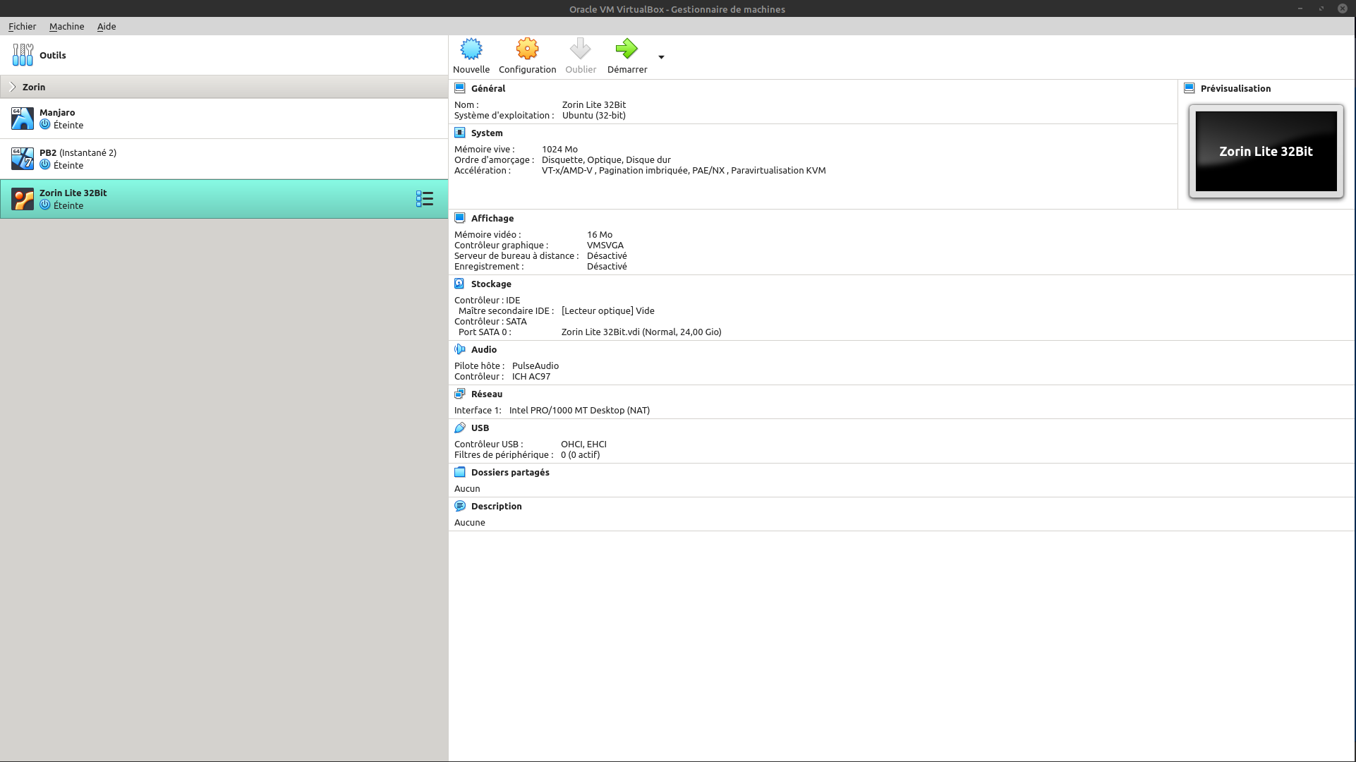 Par contre, je vais voir si VirtualBox fonctionne, même si ce n'est que pour un Zorin lite 32 !