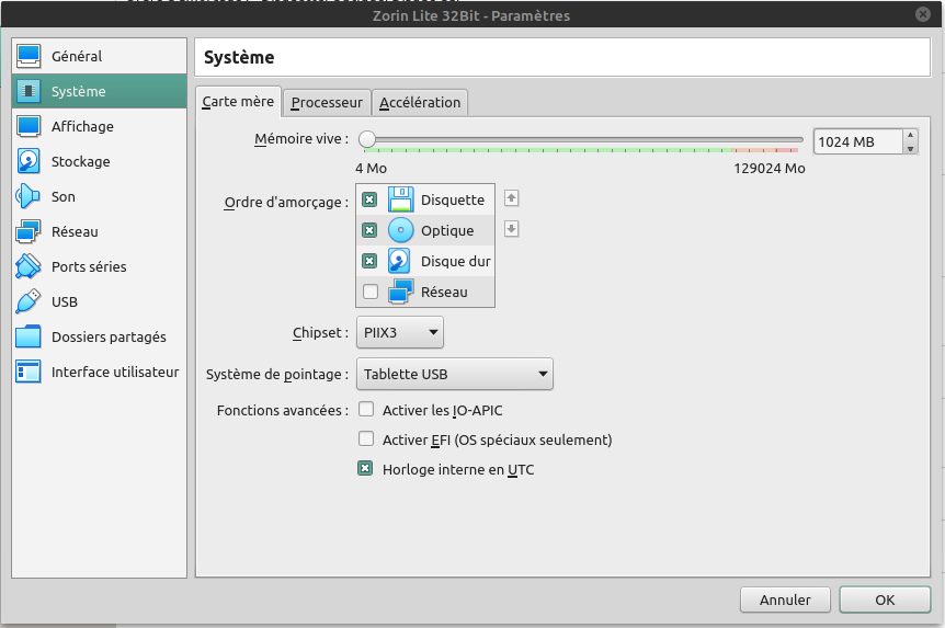 Qu'à cela ne tienne, je vais modifier les paramètres de ma machine virtuelle Zorin pour voir !