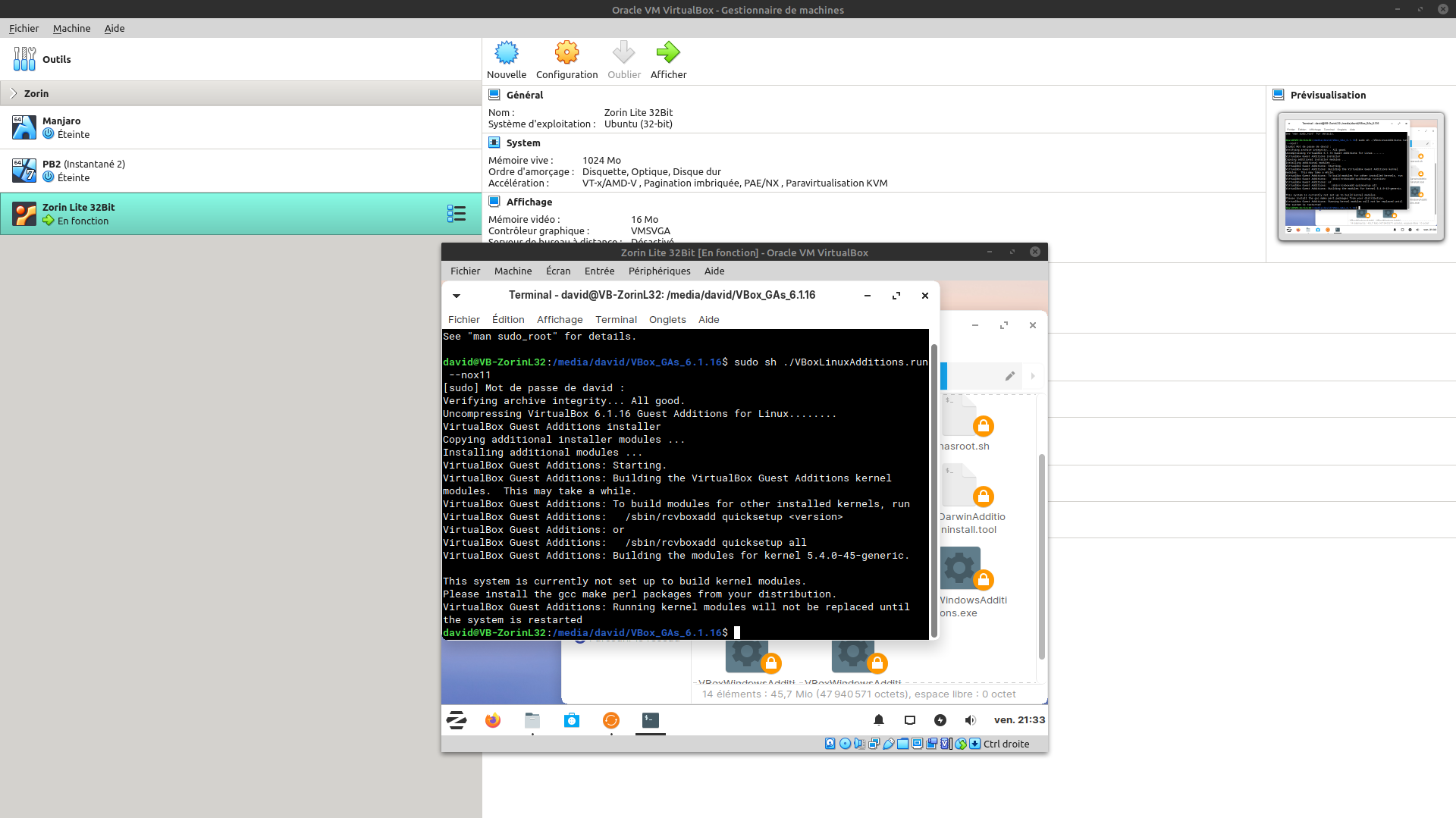 Même sanction sur VirtualBox !