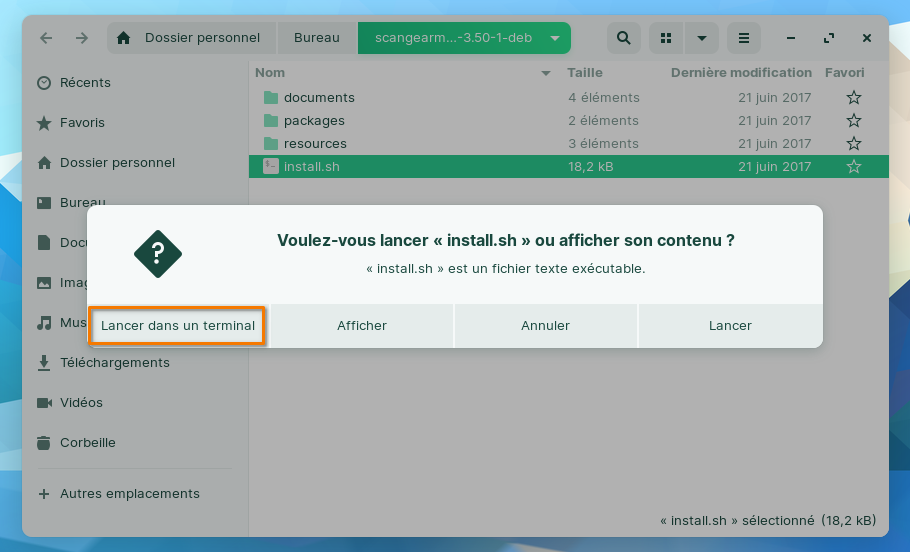 Je suppose que tu as décompressé l'archive, que tu as cliqué sur le fichier "install.sh" et que tu as choisi l'option "Lancer" ?