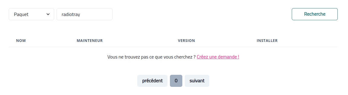 Si vous ne trouvez pas l'application désirée, vous pouvez créer une demande :