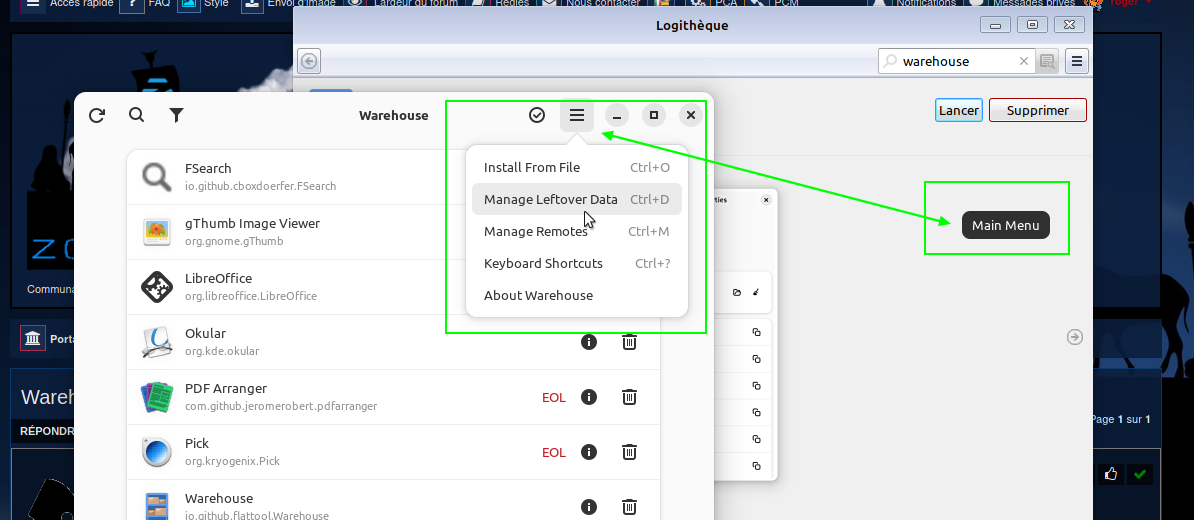 Comme Zorin est pré-configuré pour Flatpak, vous pouvez installer Warehouse soit avec "Logiciels", soit en copiant-collant dans le terminal (CTRL Alt t) la ligne fournie sur Flathub — pour d'autres distributions, consultez cette page :