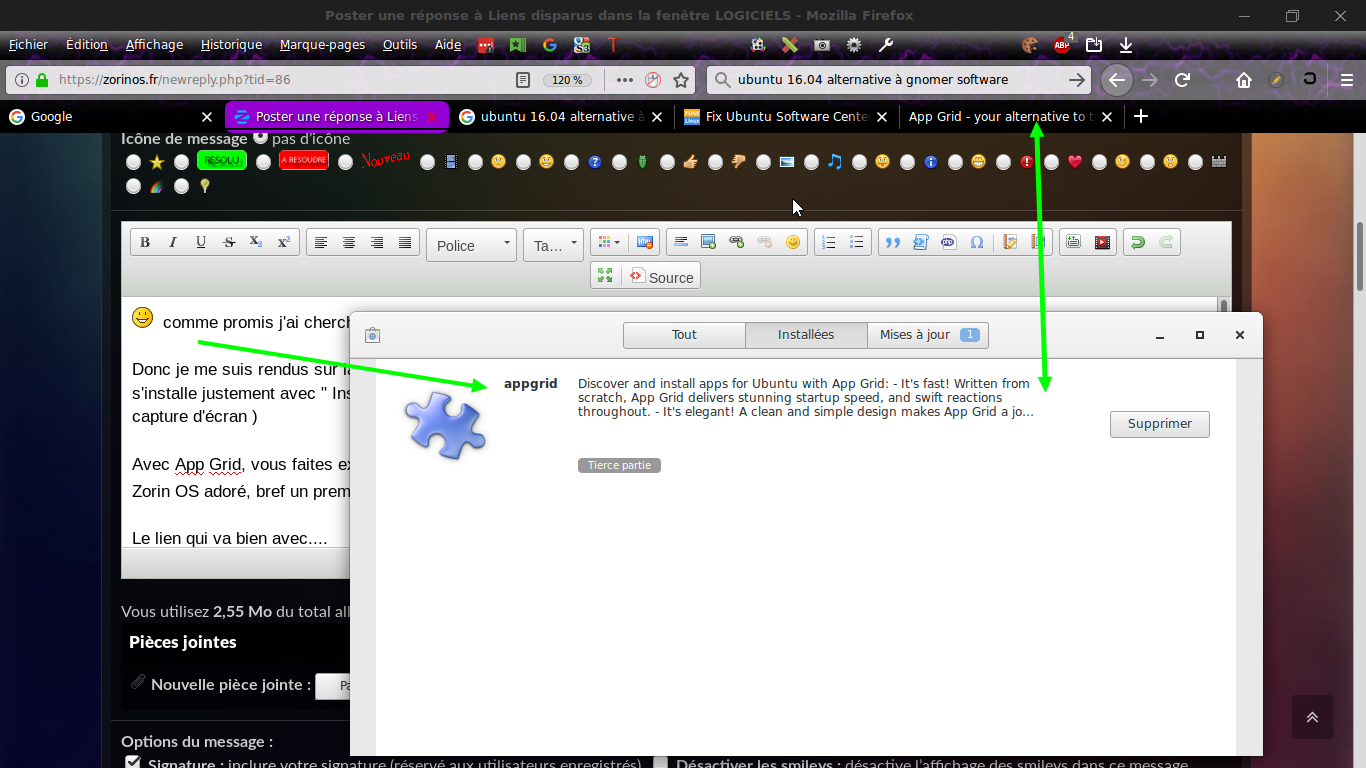 Grace à cette alternative j'ai pu dénicher des softs non présents dans l'installateur d'origine de Zorin OSleonidoff22 a écrit :Merci Roger pour la solution APP GRID. Ça c'est une super solution à garder en ligne...