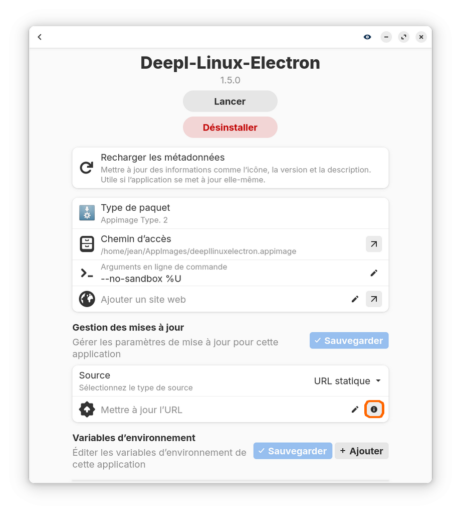 Mais là où il l'emporte, c'est qu'il règle le problème de la mise à jour inhérent à la plupart des AppImages.