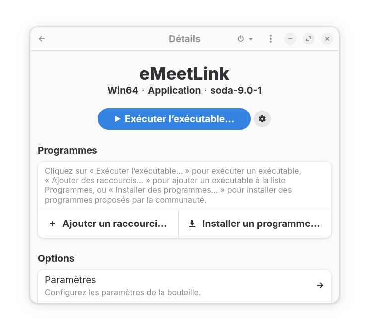 Elle installera "Bottles" qui se chargera d'installer ton programme Windows en quelques clics, avec toutes les dépendances nécessaires, dans un environnement conteneurisé, le tout par le biais d'une interface moderne et élégante.