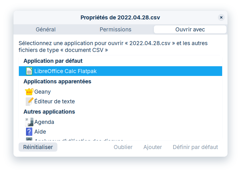 Je vois encore une application "LibreOffice Calc" par défaut et une autre "Recommandée"
