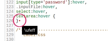 Et encore, seulement quand je veux ajouter des lignes à la fin du fichier ! Quand je les mets au début, le marqueur \ufeff incriminé est bien là, mais il n'empêche pas la bonne lisibilité du css.