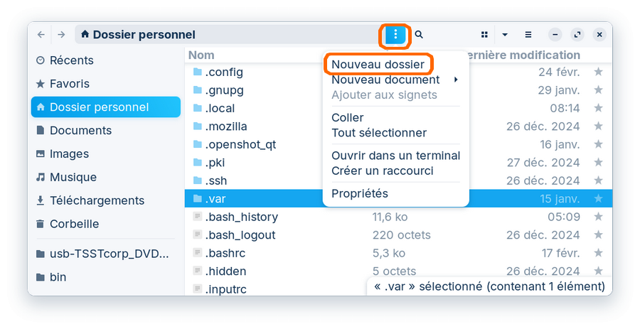 - Je lance l'explorateur de fichiers qui s'ouvre sur le "Dossier personnel".