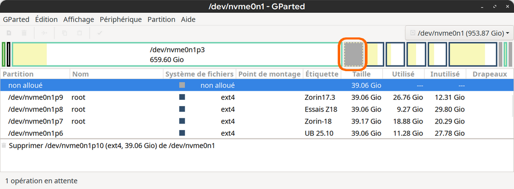 Tant que tu n'auras pas cliqué sur le bouton "Appliquer toutes les opérations", rien ne sera définitif : comme le montre la dernière capture d'écran, les opérations sont en attente.