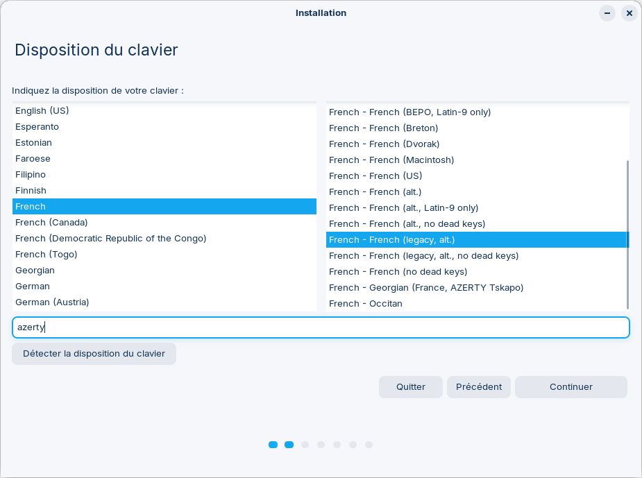 • N'oublie pas non plus de vérifier au passage si le clavier détecté est bien en disposition AZERTY :