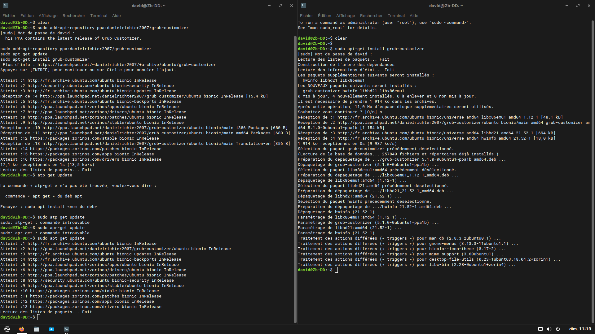Et là ça fonctionne, donc j'installe grub-customizer en suivant la procédure donnée par Saint JLB !