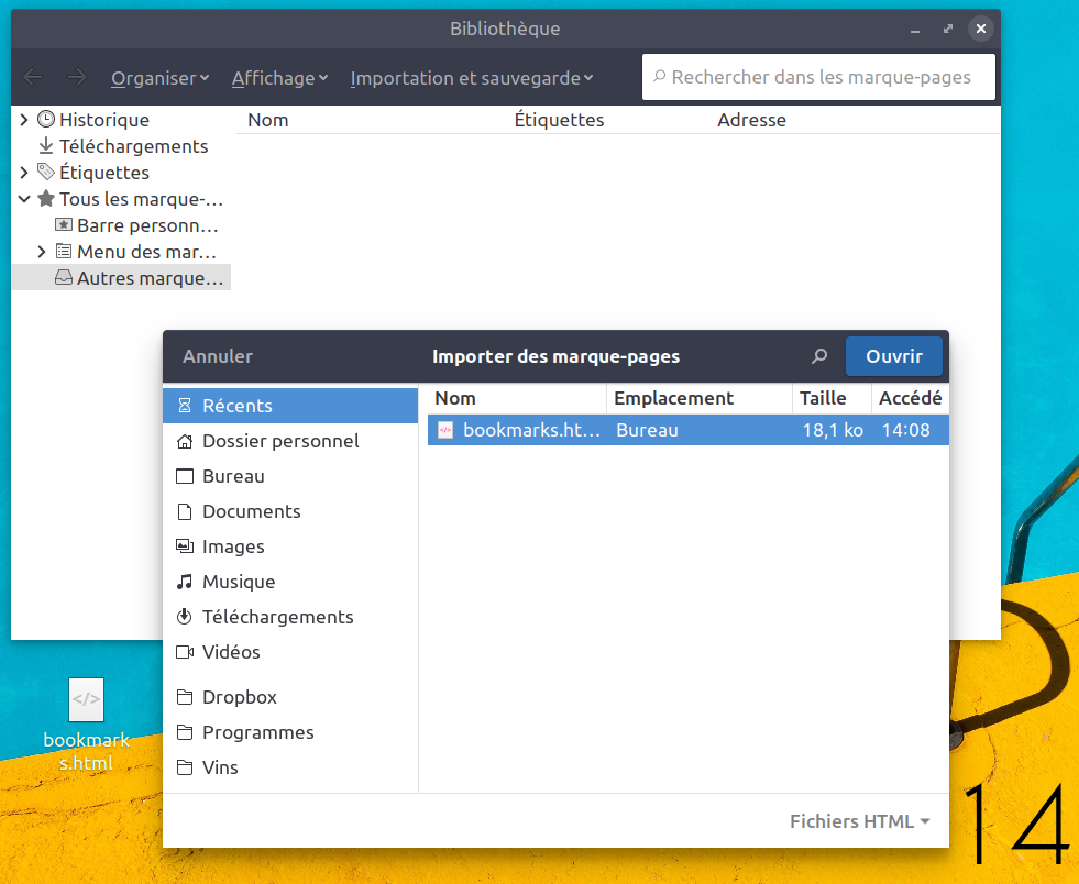 je voudrais importer mon fichier favori au format html sur Firefox: