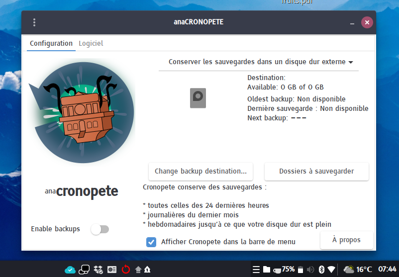 jlb a écrit : mar. 27 juil. 2021 14:56En effet, @roger, le bug a d'ailleurs été signalé et résolu (?) sur le GitHub de rastersoft/cronopete :