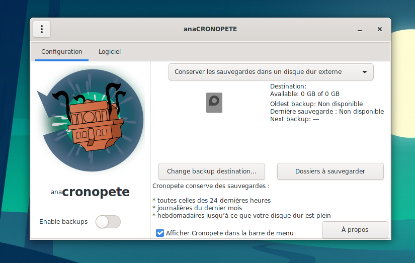 En effet, @roger, le bug a d'ailleurs été signalé et résolu (?) sur le GitHub de rastersoft/cronopete :​​​​​​​​​​​​​​