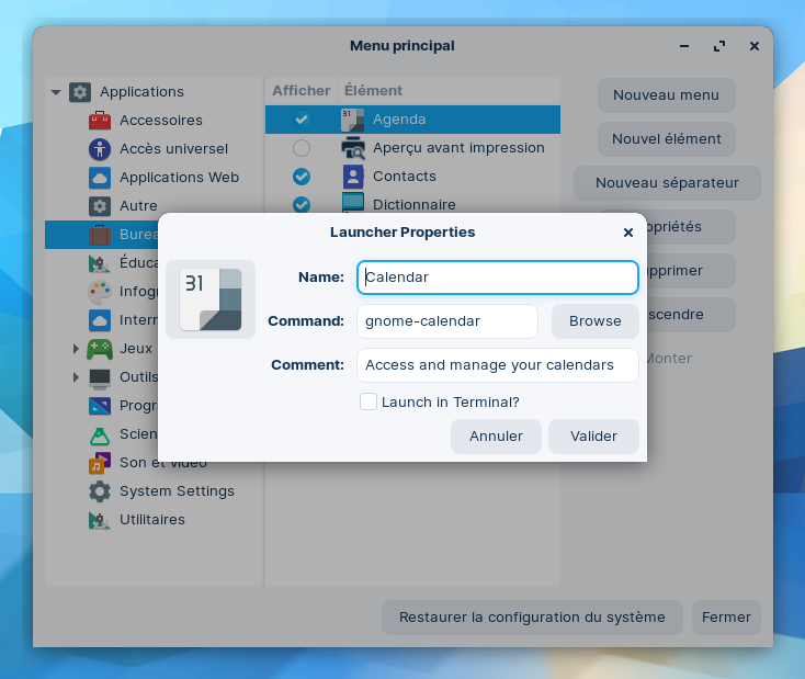 Dans le cas présent, le lanceur est finalement "org.gnome.Calendar.desktop"...