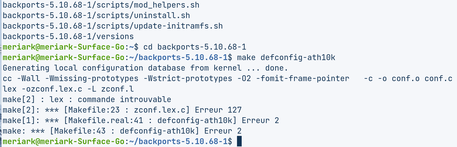 A ce niveau, j'ai une hésitation, vu que j'ai rencontré "make defconfig-wifi" et "make defconfig-ath10k".