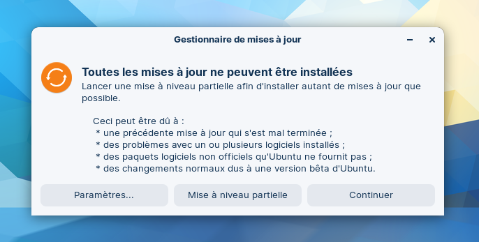 Et la mise à niveau partielle plante. Heureusement pour mon système !