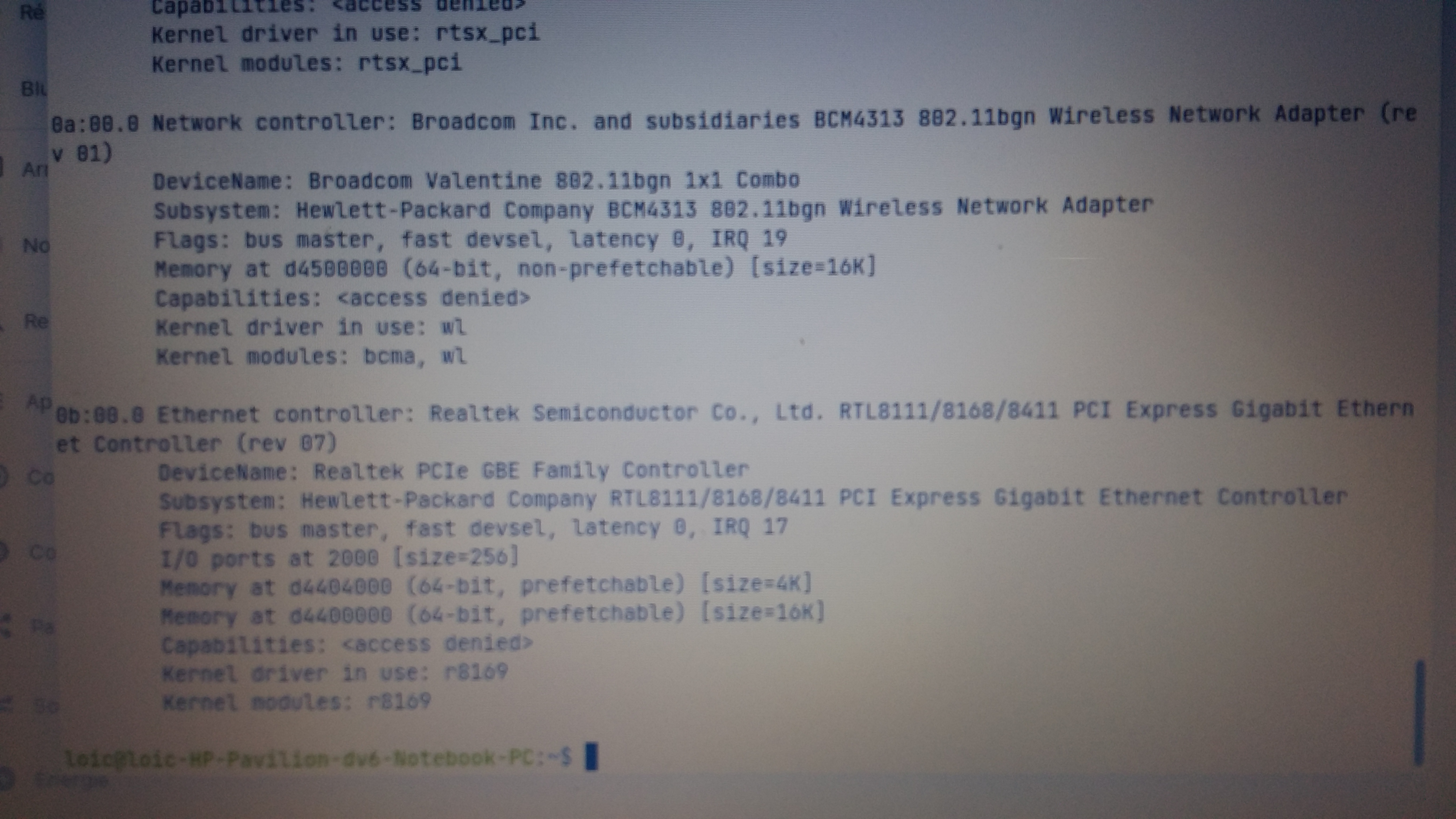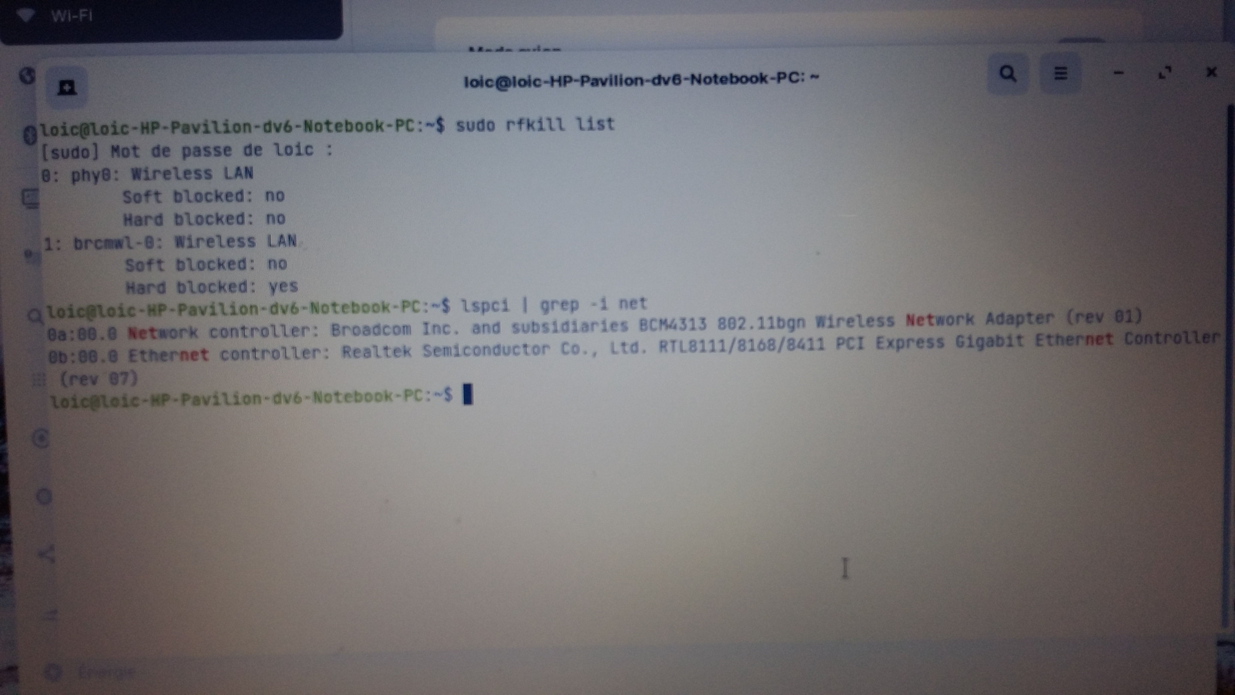 Suite à quelques recherches et lignes de commande sur terminal, il semble que la puce wifi soit une Broadcom BCM 4313 et ne soit pas activée (photo 2 et 3)