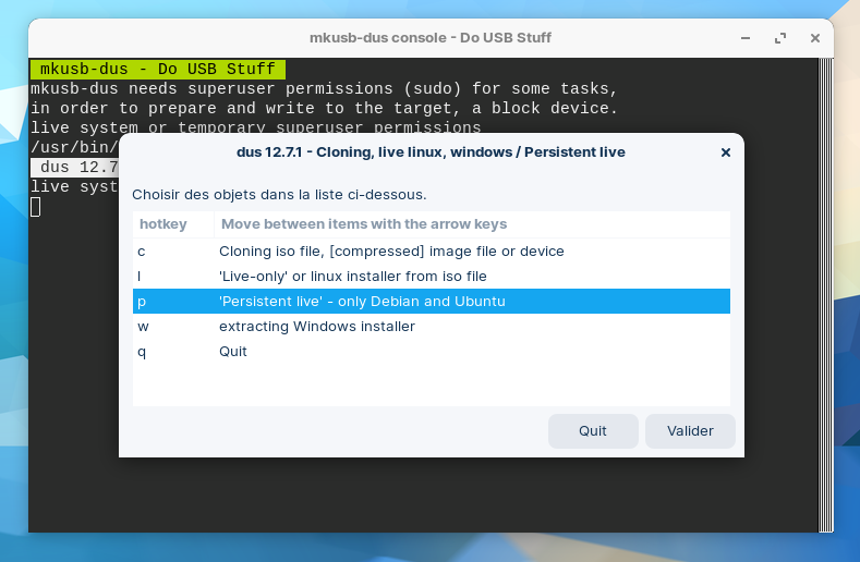 Ne vous laissez pas impressionner par d'éventuels avertissements catastrophistes (certains en rouge) : apparemment "Mkusb" préfère les systèmes Ubuntu ou Debian de première génération aux "petits-enfants" comme Zorin, qui descend d'Ubuntu, lequel descend de Debian...