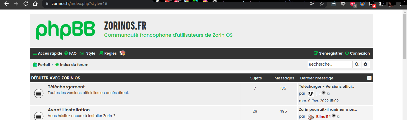 jlb a écrit : lun. 14 févr. 2022 08:58 Je ne sais pas vous, mais moi ça m'agace un peu, lorsque je ne suis pas (encore) connecté, que le style de la page d'accueil du forum diffère de celui que j'ai choisi, d'autant qu'il est très sombre et que mes yeux préfèrent les thèmes clairs.
